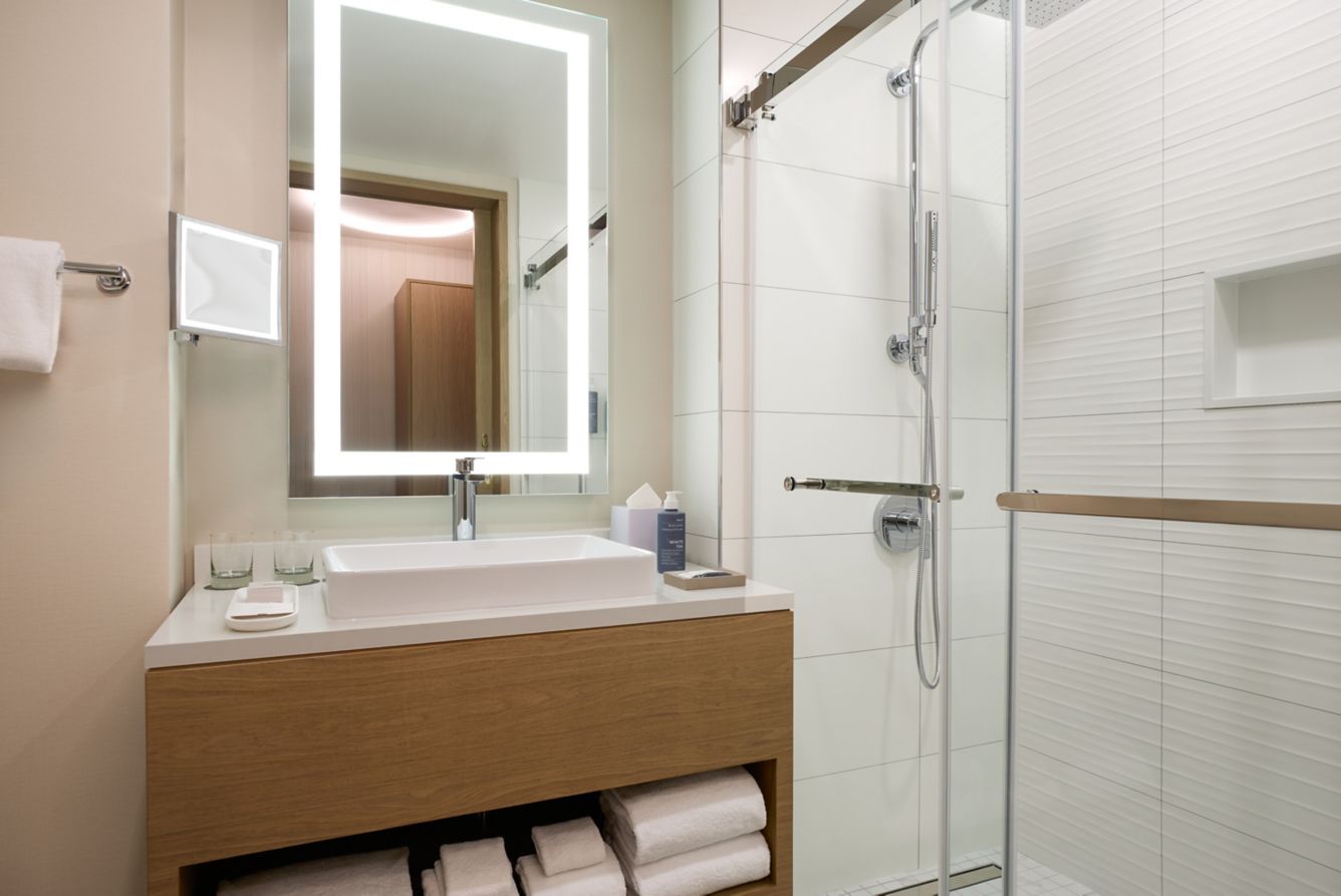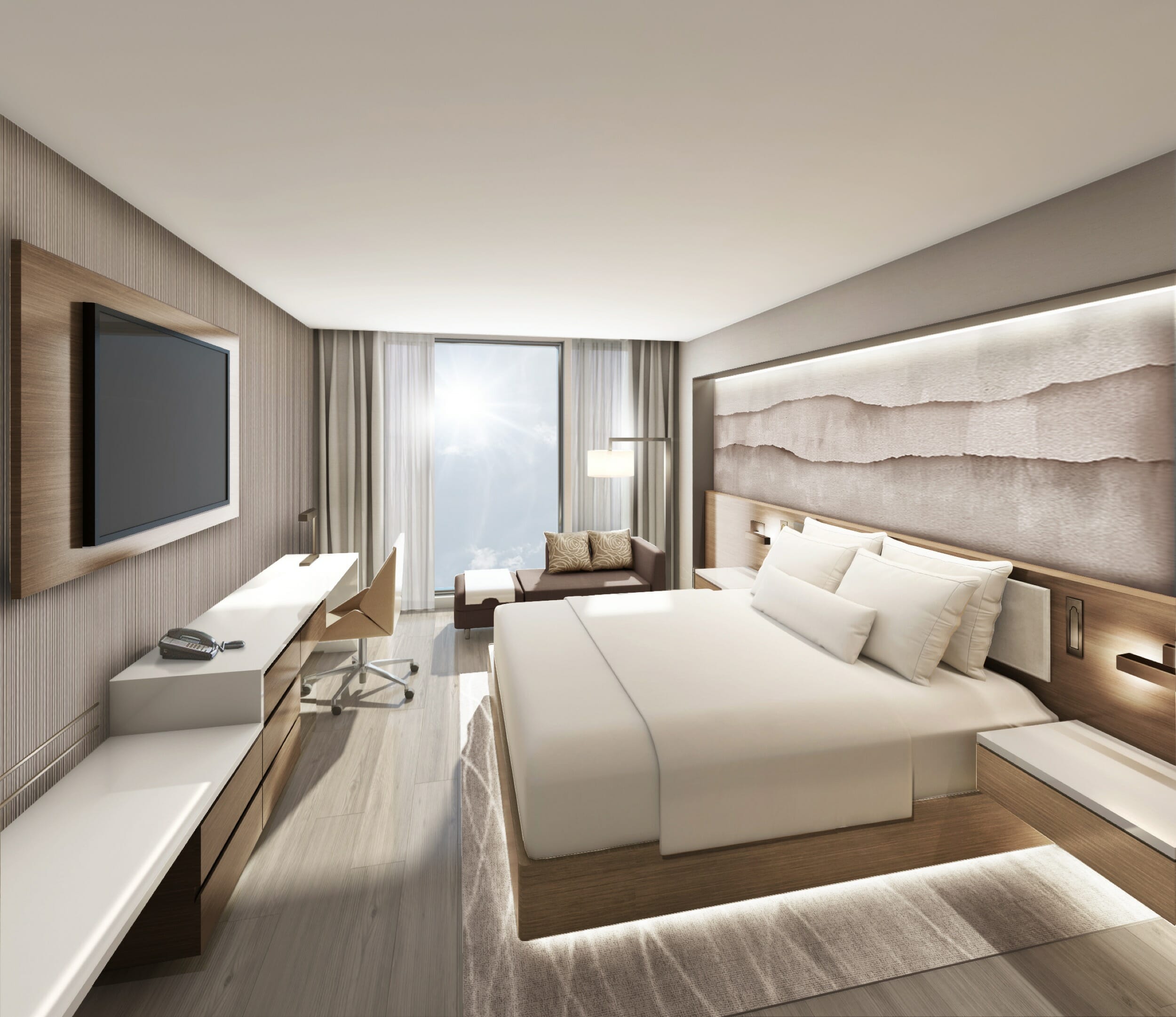 Enhancing Flushing’s evolving real estate scene, the 4.5-star, 250-key Westin Hotel blends natural materials like stone, wood, and sculpted sand with rich tones, calming neutrals, and a living plant wall to evoke a sense of Zen and timeless elegance. Thoughtfully curated art and organic textures create a warm, worldly atmosphere that reflects the neighborhood’s vibrant diversity—echoed in the hotel’s 50 luxury residences.